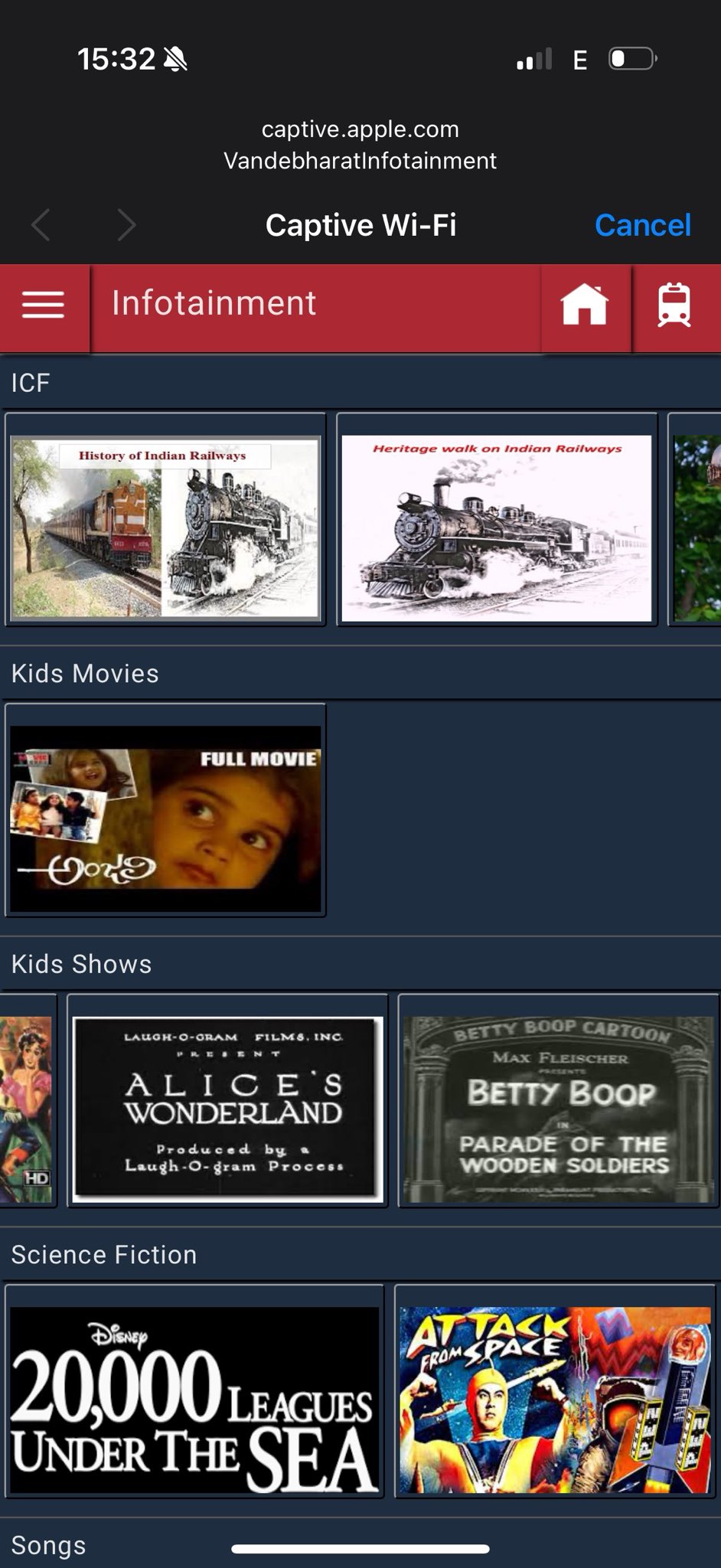 The train had a Wi-Fi system, but it didn't seem to provide Internet connectivity. Instead it had some sort of infotainment setup. I connected to it on my phone out of curiosity.