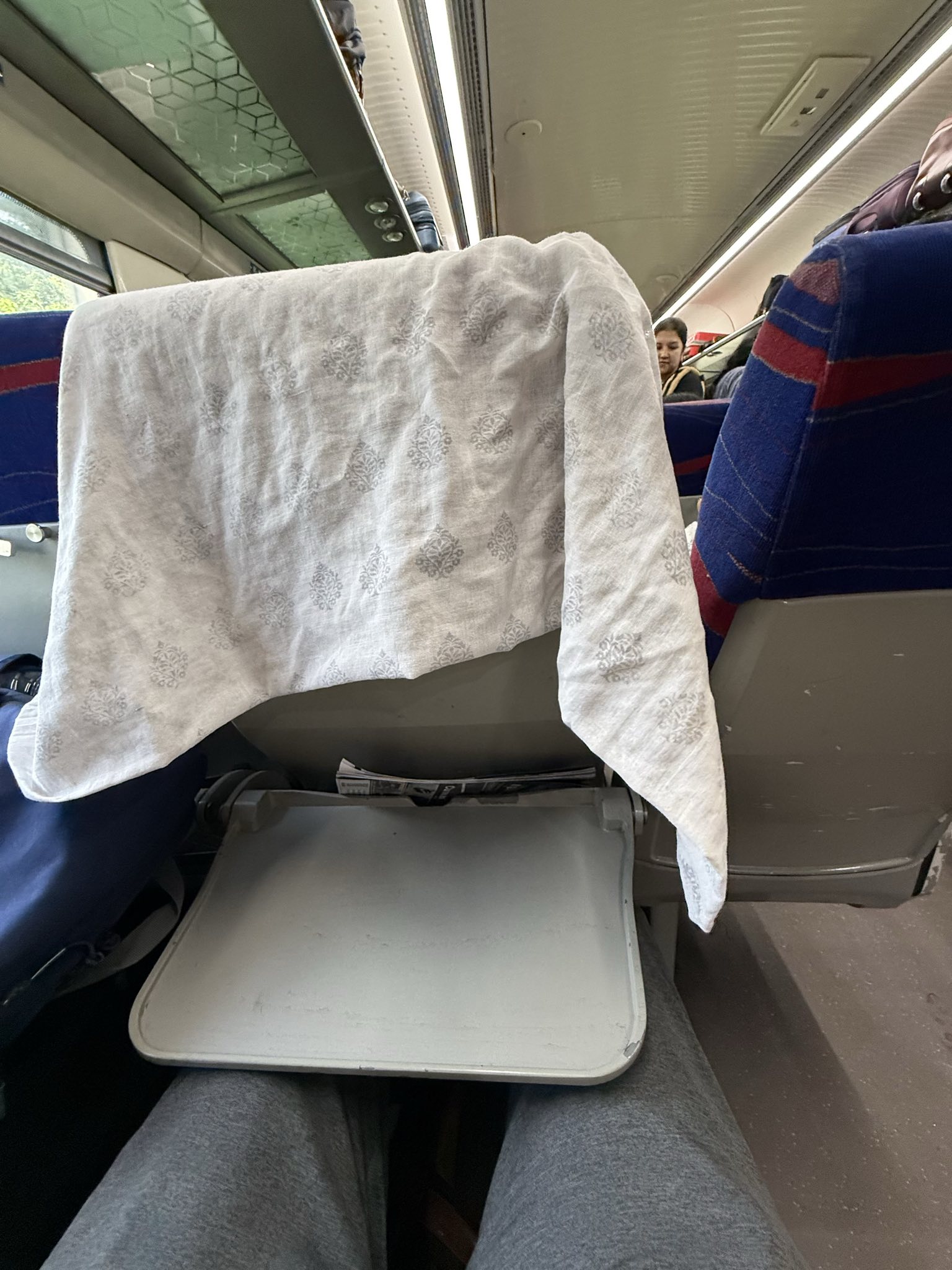 There was quite a bit of legroom and the seats themselves were quite comfortable. Unlike the leather seats I'm used to on Indian Railways these were fabric seats. Not everyone was convinced they were clean: the lady in front of me had a towel on hers.