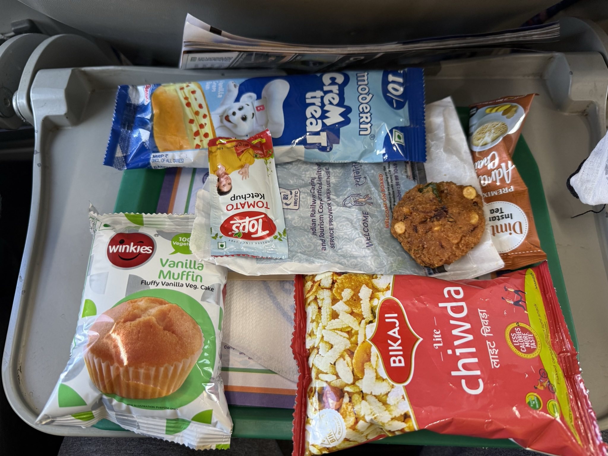 Some time into the journey (perhaps an hour) we got a bunch of snacks. These were mostly packaged either that day or the day before. Everyone seemed to get the exact same ones: