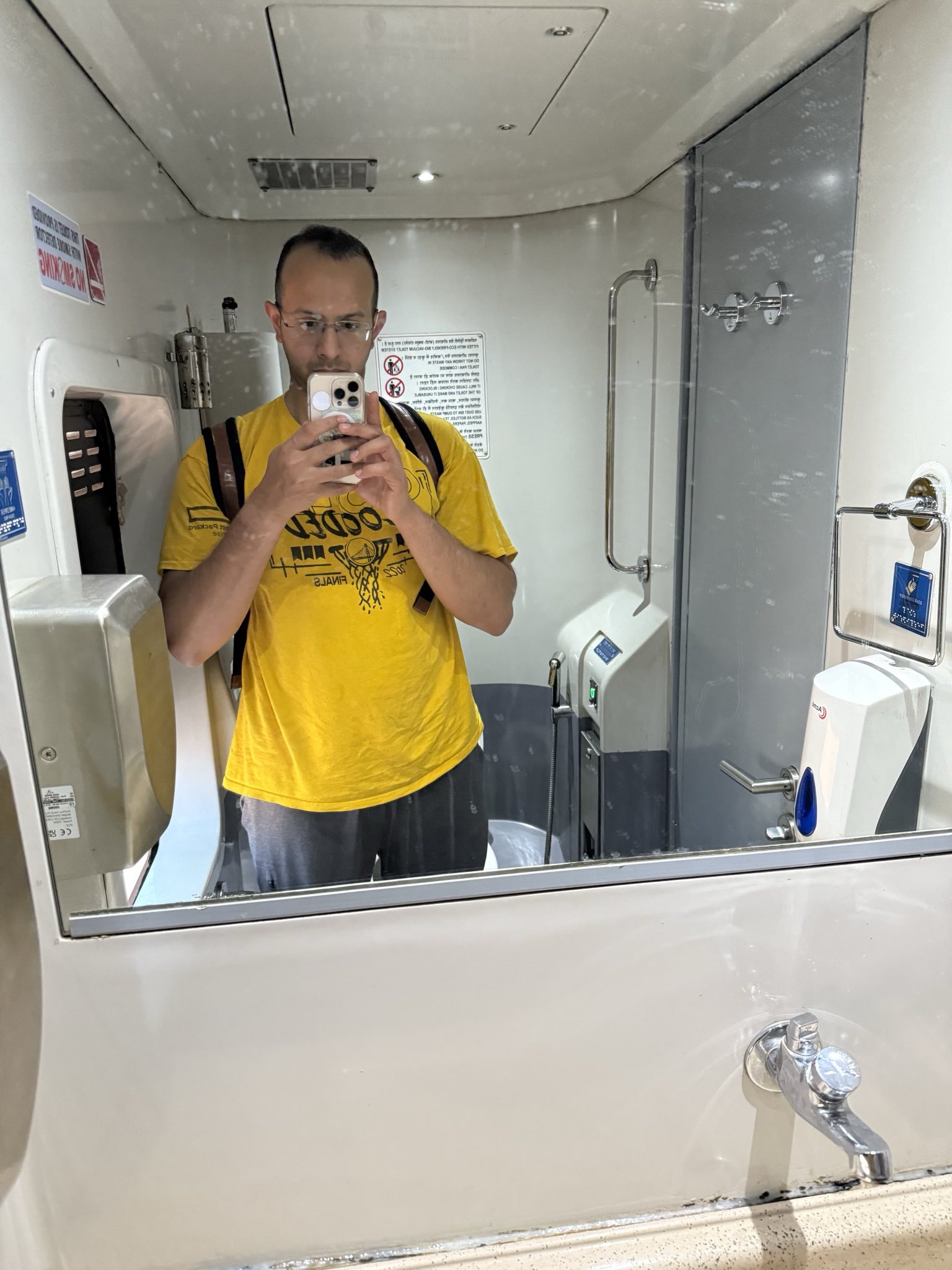 The janitorial services showed up about 2 h in and mopped the floor of the coach, so I assume they dealt with the toilet as well. That's probably why an Indian train ride can end up with a cleaner toilet at the end than an East Midlands ride.