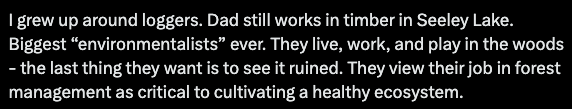 - (download) Twitter Screenshot - Loggers are Environmentalists.png . . 572 × 109 . . 30 KB . . Roshan . . 22:27, 28 August 2024