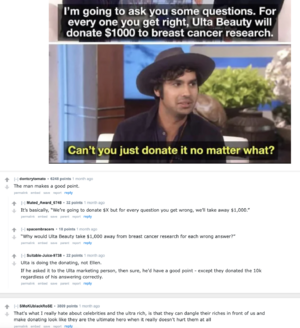 If they just had a "this section sponsored by Ulta Beauty" then no donation would have occurred and everyone would be happy