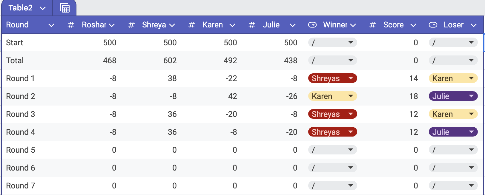 A sheet that keeps track of people's scores instead of requiring them to pass around tokens