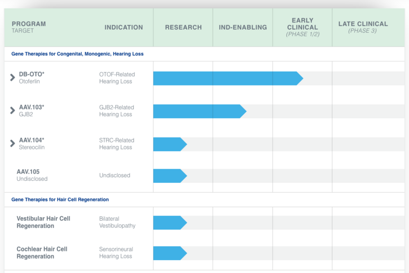 Decibel Tx Pipeline for hearing-loss gene therapies.