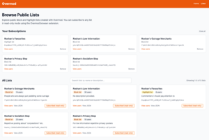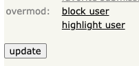 Overmod is a small program and directory that allows blocking and highlighting users on Hacker News. Other users can subscribe to my blocklist or create new ones if they so desire.